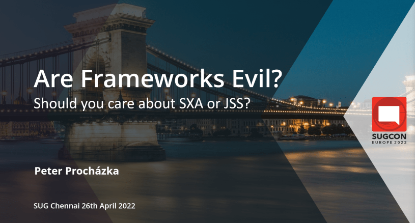Almost one year after my last webinar conducted for SUG Chennai, I have done another one for this Sitecore User Group on 26th April 2022. This time with brand new presentation “Are Frameworks evil? Should you care about Sitecore SXA and JSS?”. This was a first stop for this presentation as due to family reasons, I couldn’t present it as planned on SUGCON 2022 in Budapest. I was really happy I was asked to present it here.