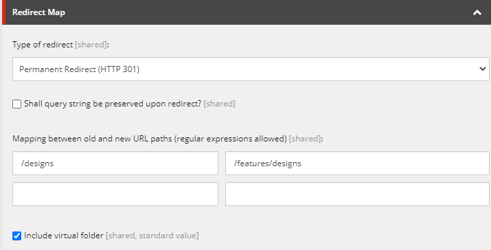 We had a requirement to support redirects using regular expressions, where part of the old URL would be taken and used in new URL.