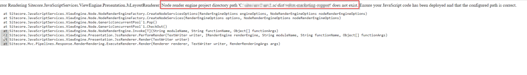 at Sitecore.JavaScriptServices.ViewEngine.Node.NodeRenderEngine.Invoke[T](String moduleName, String functionName, Object[] functionArgs)