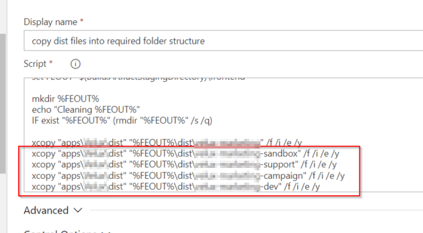 With this configuration, no more dummy copy tasks in your Azure DevOps pipelines that were just copying dist subfolders gazillion times like this just to support the OOTB configuration: